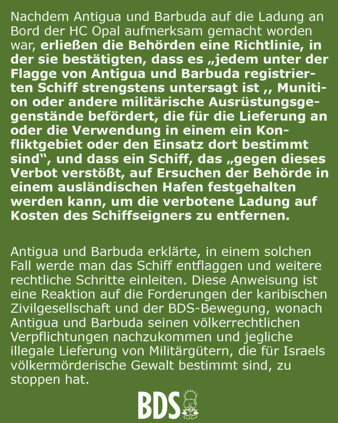 đąDie HC Opal transportiert mutmaĂlich militĂ€rische GĂŒter fĂŒr Israels anhaltenden Völkermord an 2,3 Millionen PalĂ€stinenser*innen.