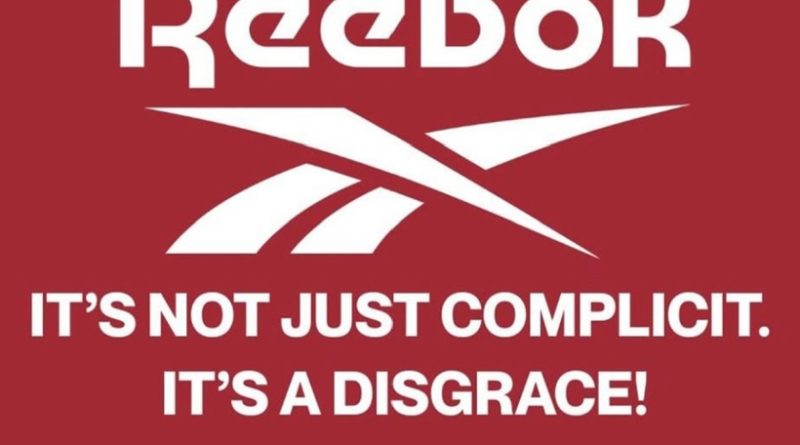 Reebok ist nicht nur Komplize! Es ist eine Schande!Lasst uns unsere BDS-Kampagne gegen Reebok verstärken! Reebok beugte sich dem Druck