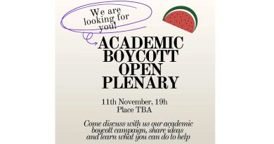 Wir werden im Anschluss über die Strategie des Akademischen Boycott sprechen und gemeinsam diskutieren.