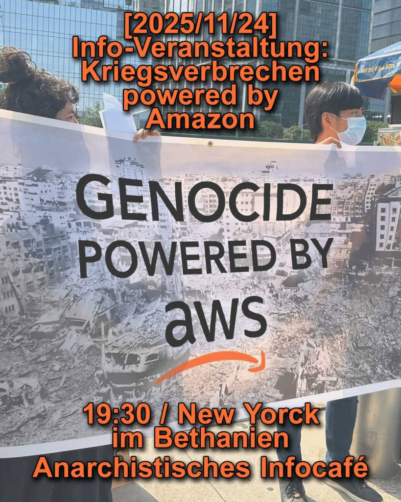 Montag, 24.11.2025 Anarchistisches Infocaféim NewYorck im BethanienRaum emanzipatorischer Projekte Über den Genozid in Gaza wird in Deutschland nur wenig berichtet