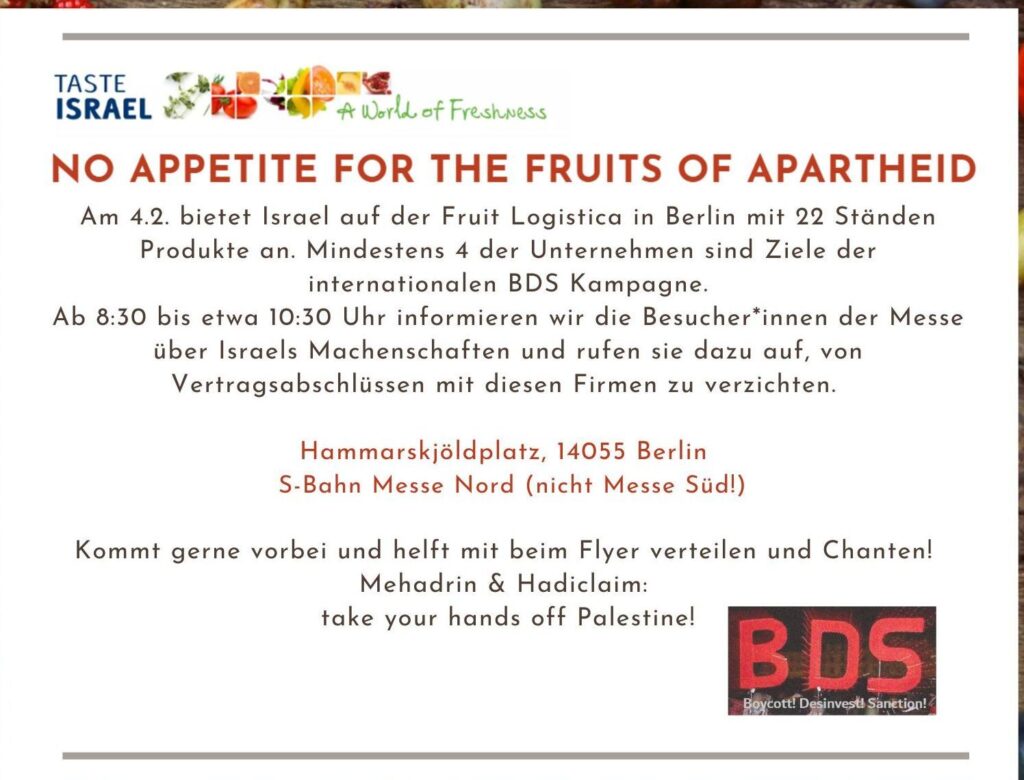 Inspiriert vom Kampf der Südafrikaner*innen gegen Apartheid ruft die palästinensische Zivilgesellschaft zu Boykott, Desinvestitionen und Sanktionen gegen Israel auf, bis dieses internationalem Recht und den universellen Prinzipien der Menschenrechte nachkommt. BDS-Kampagne informiert über bundesweite und globale Aktivitäten im Rahmen der internationalen BDS Bewegung, die den Aufruf der palästinensischen Zivilgesellschaft von 2005 unterstützt.