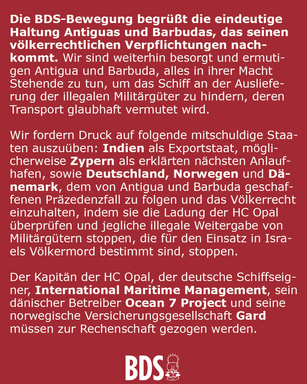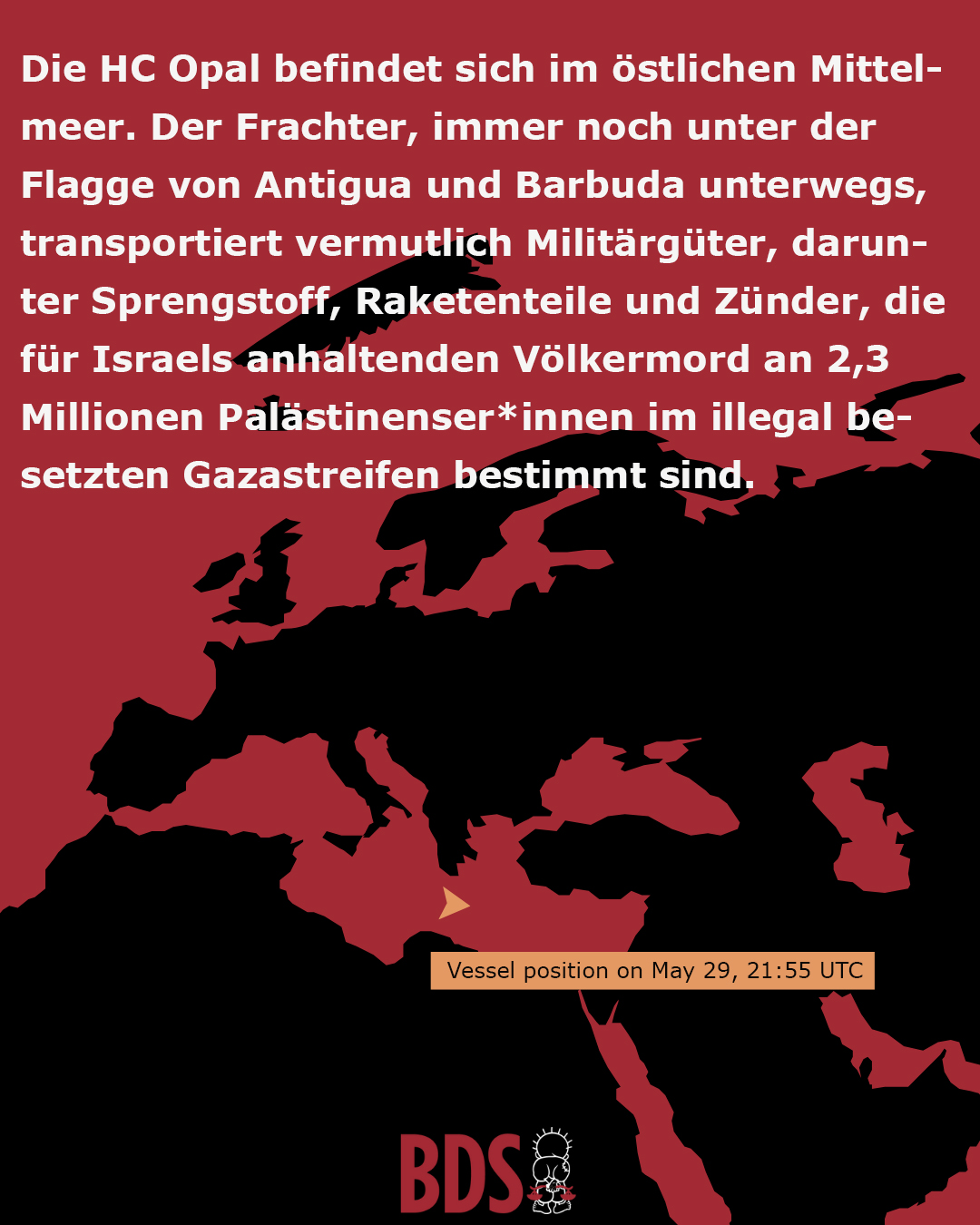 📢Die HC Opal transportiert mutmaßlich militärische Güter für Israels anhaltenden Völkermord an 2,3 Millionen Palästinenser*innen.
