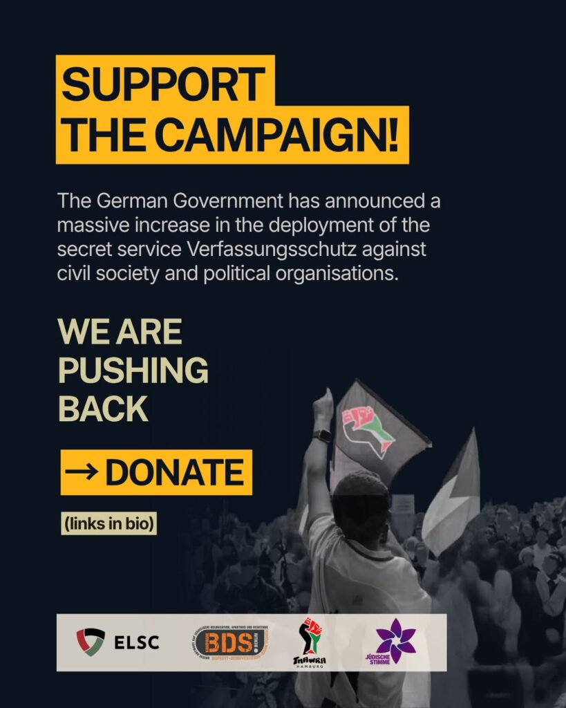 We have consistently warned of the deployment of the German secret service against civil society to spy on and prohibit public expressions of Palestine solidarity.